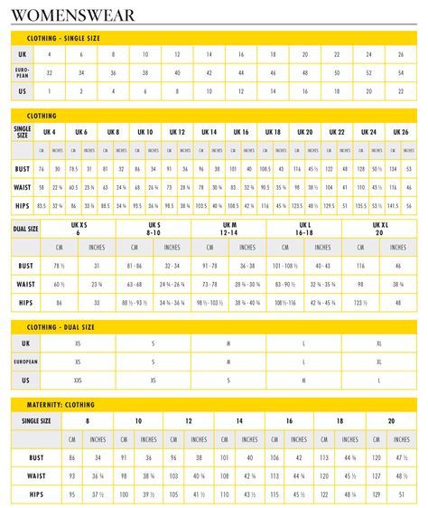 Womenswear size chart
