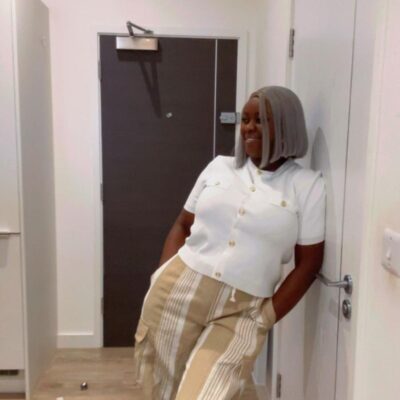 A stylish Adire and Aso-Oke Dungaree in a bold navy blue and light blue tie-dye Adire print, trimmed with orange and blue Aso-Oke stripes. The unique combination of two traditional African fabrics gives it a trendy and culturally rich look that stands out effortlessly.