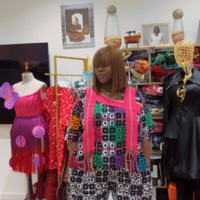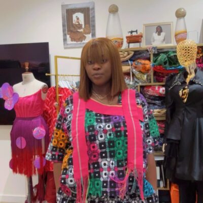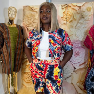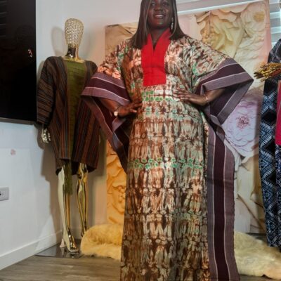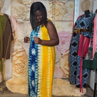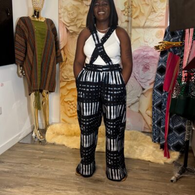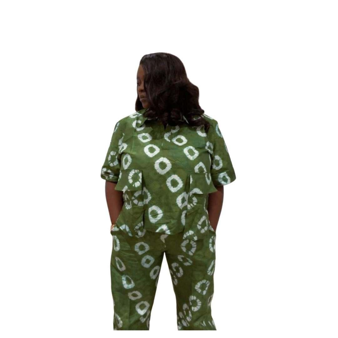 A bold and vibrant Green Adire Cargo Set in a striking green and white tie-dye pattern. The relaxed top is paired with matching cargo trousers, creating a fun and stylish coordinated look.